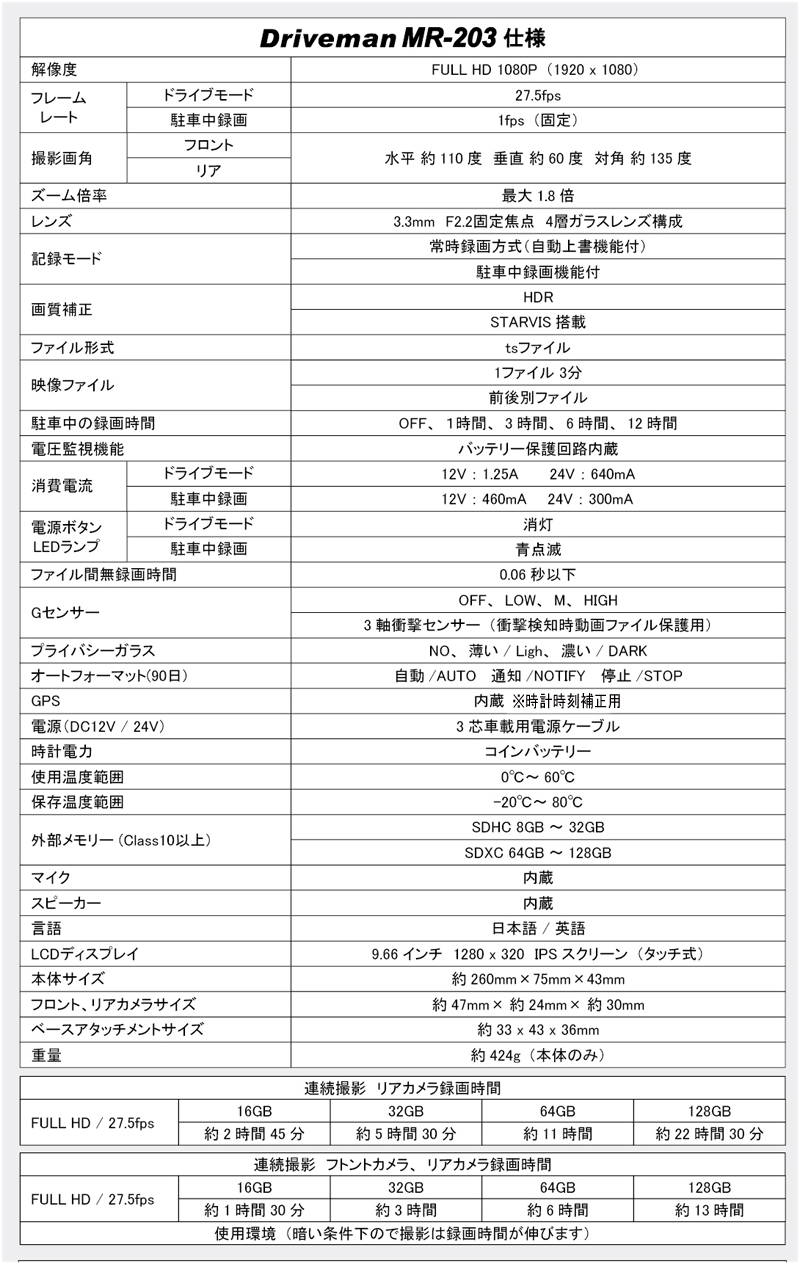 MR203 ドライブレコーダーDigital Mirror
