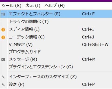 メニューのツールからエファクトとフィルターに進んで下さい。