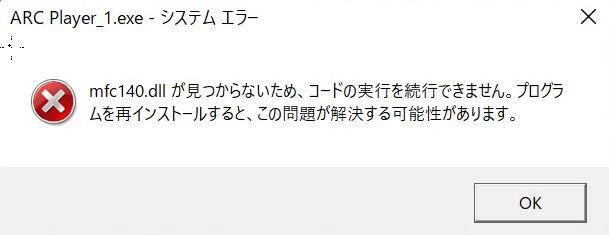 マイクロソフト製のVC++ランタイムがインストールされていないPCの場合、下記のエラー画面が出ます。